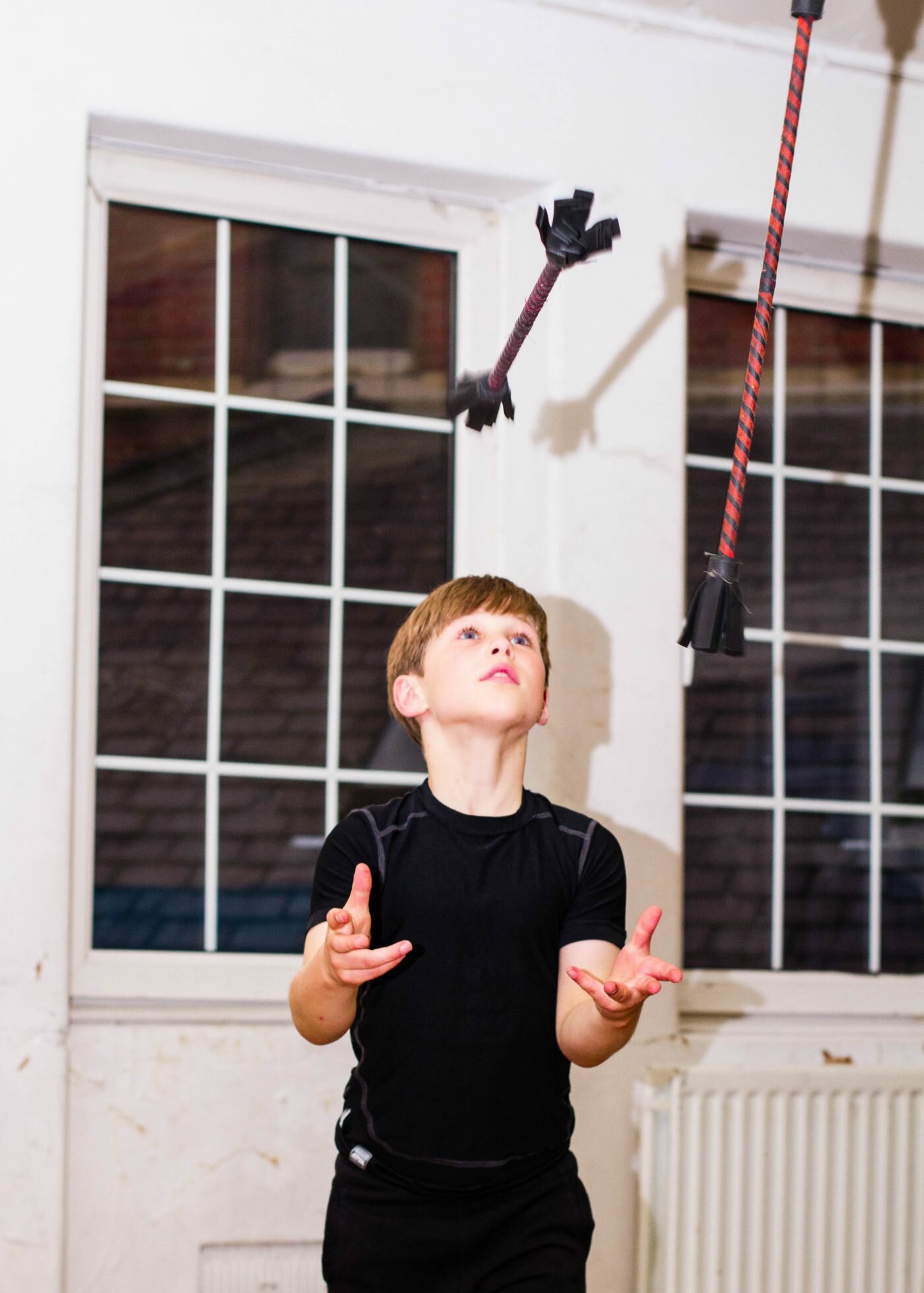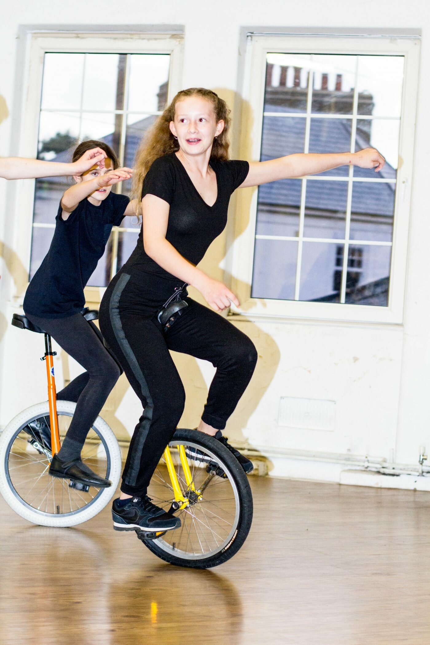 Developing skills in stilt walking, trapeze, ball walking, tightrope, juggling, unicycling and acrobatics.
